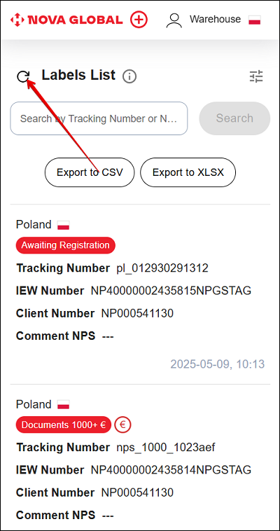 | 12 | Failed | The final status indicates that a label was uploaded for which the necessary data could not be obtained or the data obtained from the label could not be used to create a valid parcel object in NPS. You need to check the uploaded label and upload it again |