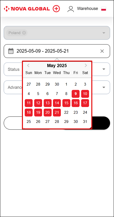 Select the required dates from the built-in calendar. To apply the Date Filter, click the Apply button. To reset the filters, click the Reset button.