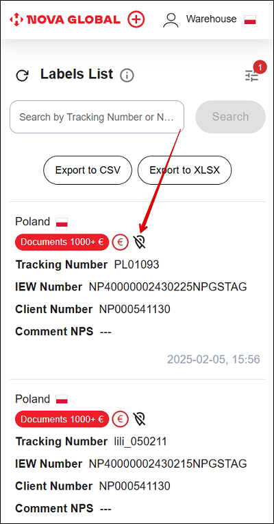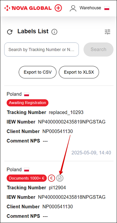 | 1 | Documents 1000+€ | Status only for parcels in Poland. It is displayed if the value of the parcel contents is more than EUR 1000 and the recipient has attached documents. The Polish technical warehouse has the opportunity to review the documents attached to the parcel and make a comment about incorrect documents |