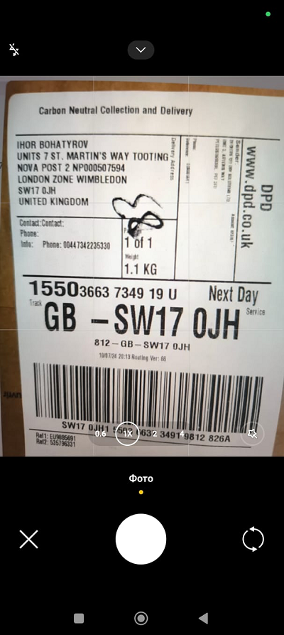 Your device's camera interface opens. Take a photo of the label.